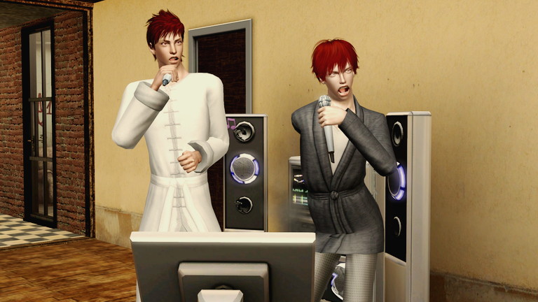 赤色でカラオケ。男シムのうまいカラオケって聞いたことなかったから、ずるして二人とも3にしたら超絶ハーモニーでわろたwww聞きほれたわwwwww