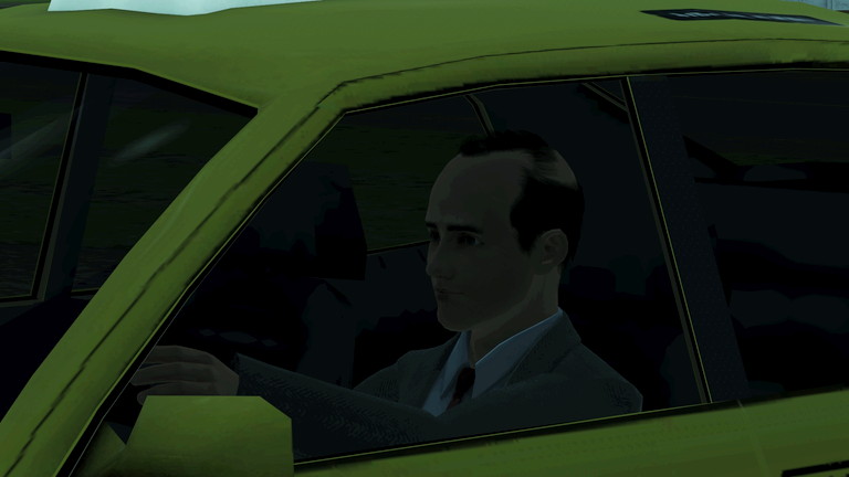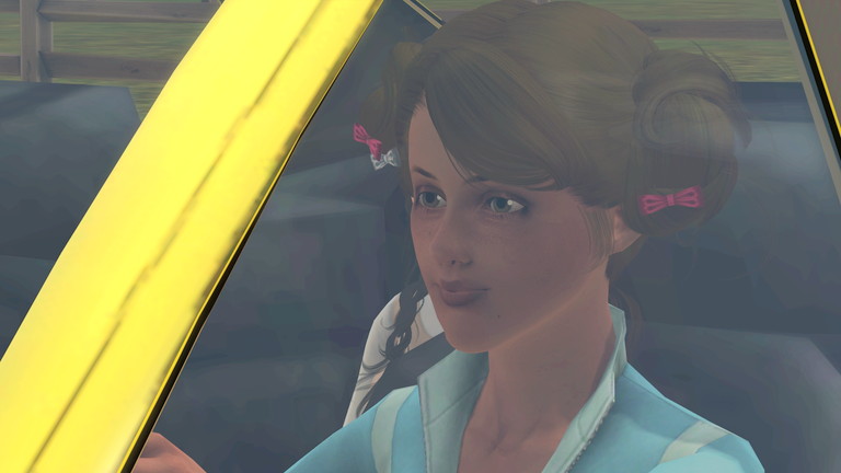若作りなドライバーさんのタクシーで、どこかへ向かうようです。