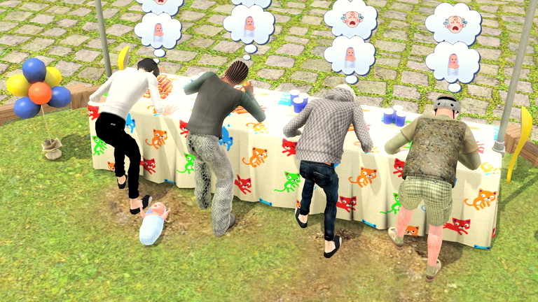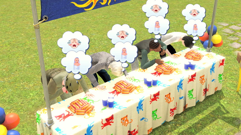 スタートと同時に響き渡る赤ちゃんの鳴き声に、一斉に喉を詰まらせるお兄さんたち。
