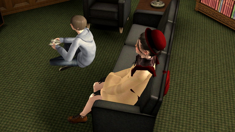 そういえば寮生活でくっついてるシム初めて見た気がしますね。ノリでウフフしてた奴らはいましたが、彼らは本当にただのノリだったようなので。なんだかほっこりします。