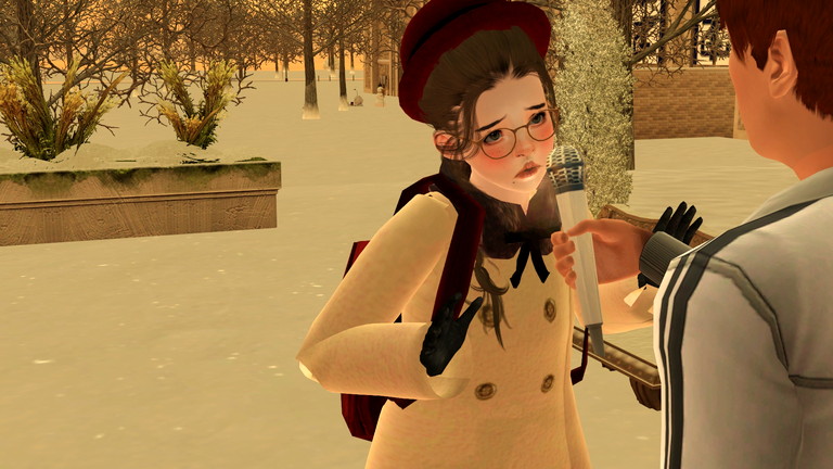 大学前でインタビューを受けるひさ子。機嫌よく答えていたのですが、