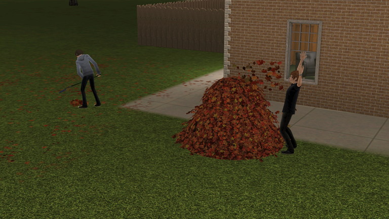 レオナルド君が必死にかき集める横で、バカが嬉しそうに遊んでいます。レオナルド君の背中が妙に大きく見えますね。